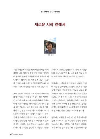 하였습니다. 저의 첫 직장이자 마지막 직장이 니다. 하나님을 만난 후, 나의 삶과 세상을 보