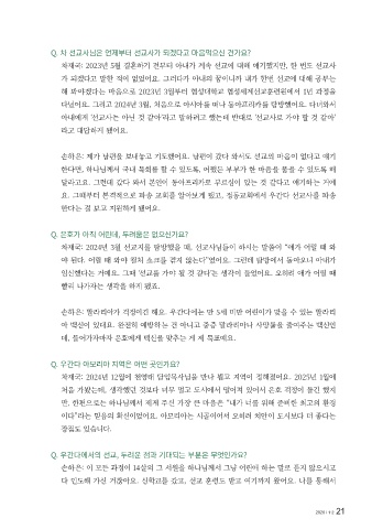 임신했다는 거예요. 그때 ‘선교를 가야 될 것 같다’는 생각이 들었어요. 오히려 애가 어릴 때