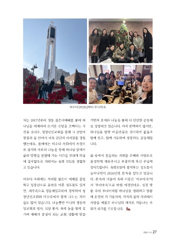 저는 2017년부터 정동 젊은이예배를 통해 하 기반의 교제와 나눔을 통해 더 단단한 공동체