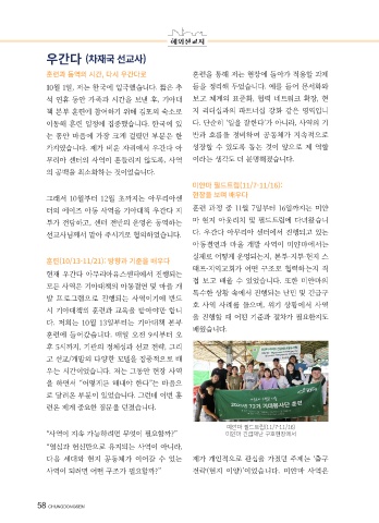 가지였습니다. 제가 비운 자리에서 우간다 아 성장할 수 있도록 돕는 것이 앞으로 제 역할