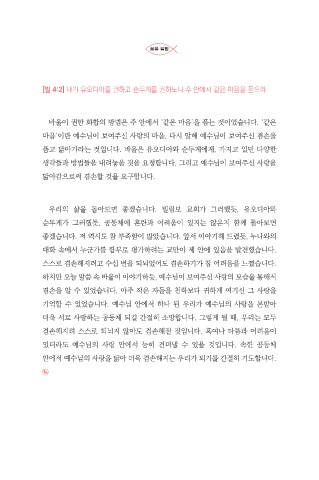 안에서 예수님의 사랑을 닮아 더욱 겸손해지는 우리가 되기를 간절히 기도합니다.