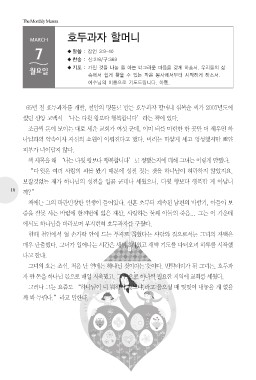 월요일 ◆ 기도 : 가진 것을 나눌 줄 아는 너그러운 마음을 갖게 하소서. 우리들의 삶