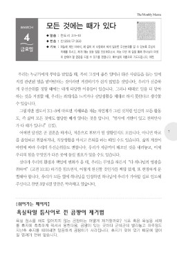 도, 즉 삶의 모든 것에도 합당한 때가 있다는 것을 압니다. “범사에 기한이 있고 천하만사