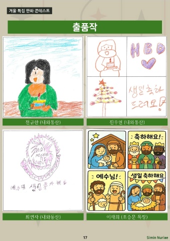겨울 특집 만화 콘테스트 출품작 전규한 (내와동산) 진우연 (내와동산) 최연자 (내와동산) 이재희 (조승문 목장) 17 Simin Nuriae