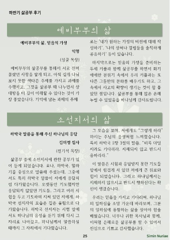 대방을 더 깊이 이해할 수 있다는 것이 가 았던 점입니다. 삶공부를 통해 많은 은혜