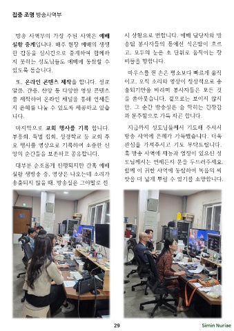 방송 사역부의 가장 주된 사역은 예배 시 상황으로 변합니다. 예배 담당자와 방