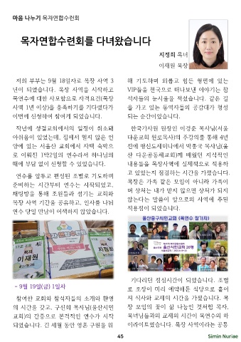 교회)의 간증으로 본격적인 연수가 시작 목녀님들과의 교제의 시간이 목연수의 하