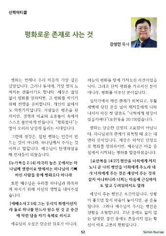 평화는 언제나 우리 마음의 가장 깊은 하늘의 평화를 땅에 가져오신 사건이었습