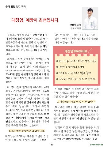 받아 상당히 진행된 상태에서 발견되는 경 2. 대장암은 ‘막을 수 있는’ 암입니다.