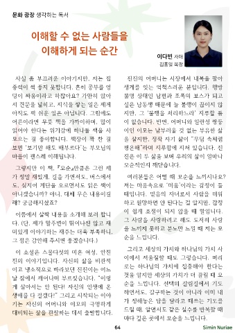 마음이 괜스레 이해됩니다. 진은 이 두 삶을 보며 우리의 삶이 얼마나